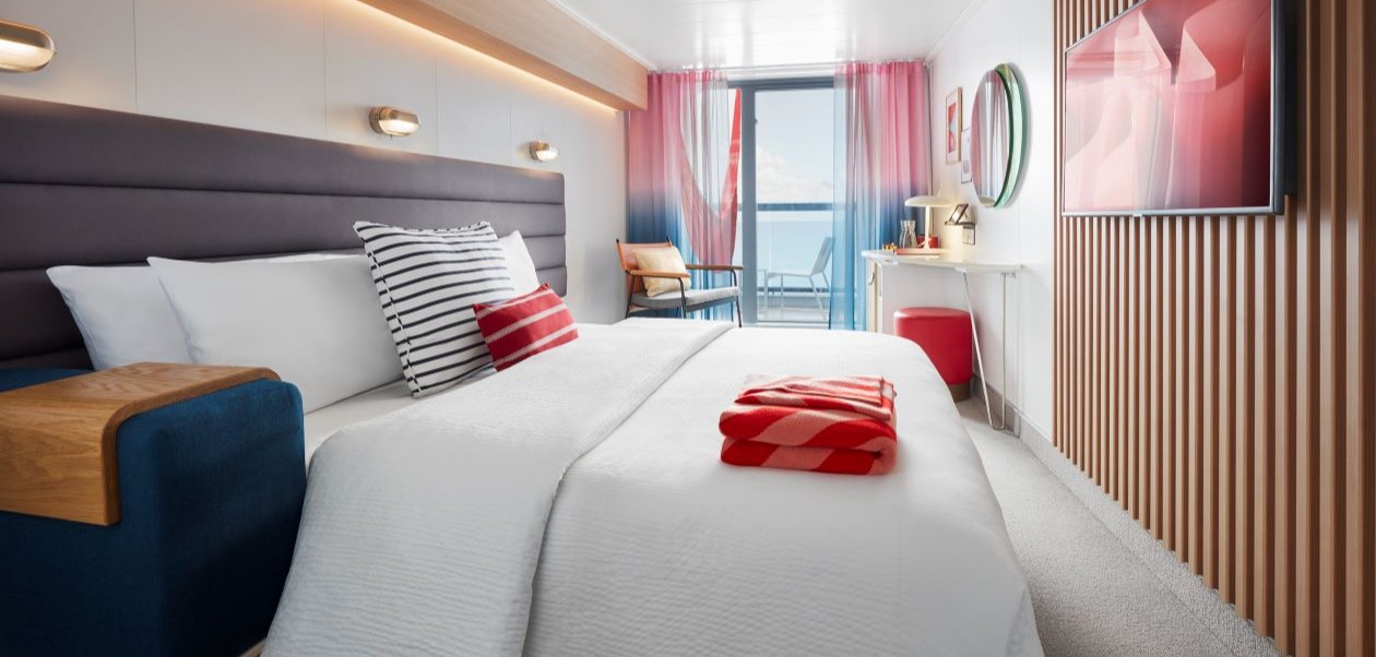 Sailing onboard the Resilient Lady is all about effortless luxury with a modern, relaxed edge. Your private terrace—with Virgin’s signature red hammock—becomes your personal front-row seat to sunrise sail-aways and sunset seas. Inside, the cabin is smartly designed with a plush European king bed, mood lighting, a rainfall shower, and intuitive tech that lets you control lights, temperature, and curtains at the touch of a button.